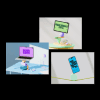 Balancing on abstract green and purple shapes, the iPhone highlights mobile design with a light, modern aesthetic and a subtle playful vibe that keeps the scene feeling fresh.