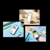 A desk iPhone mockup shown resting on a simple stand in a softly lit workspace, offering a realistic scene for placing custom mobile screen designs.