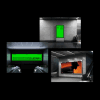Metro billboard mockup mounted on a metal side panel under cool lighting and blue seating forms a crisp urban setting ideal for for showcasing advertising visuals.