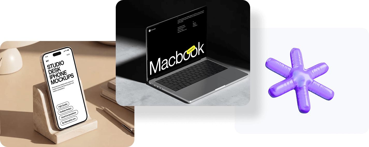 Explore our full library of free design resources. From device and branding mockups to 3D illustrations. Grab what you need in Figma and PSD, no strings attached.