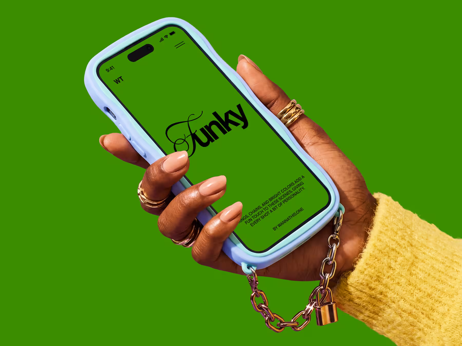 Funky iPhone Mockup in Hand with Chain Accessory