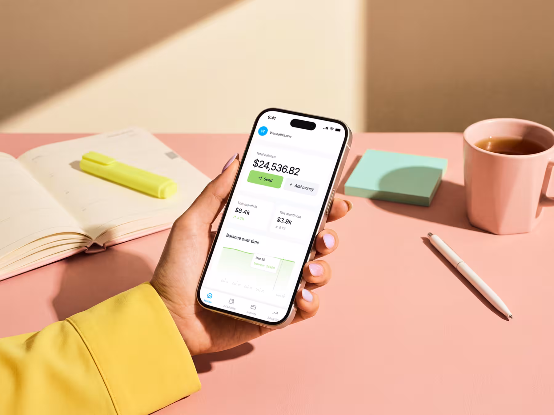 Handheld iPhone Mockup at Studio Desk