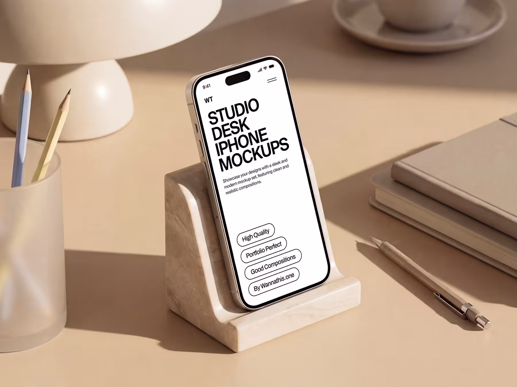 iPhone Mockup on Studio Desk Stand
