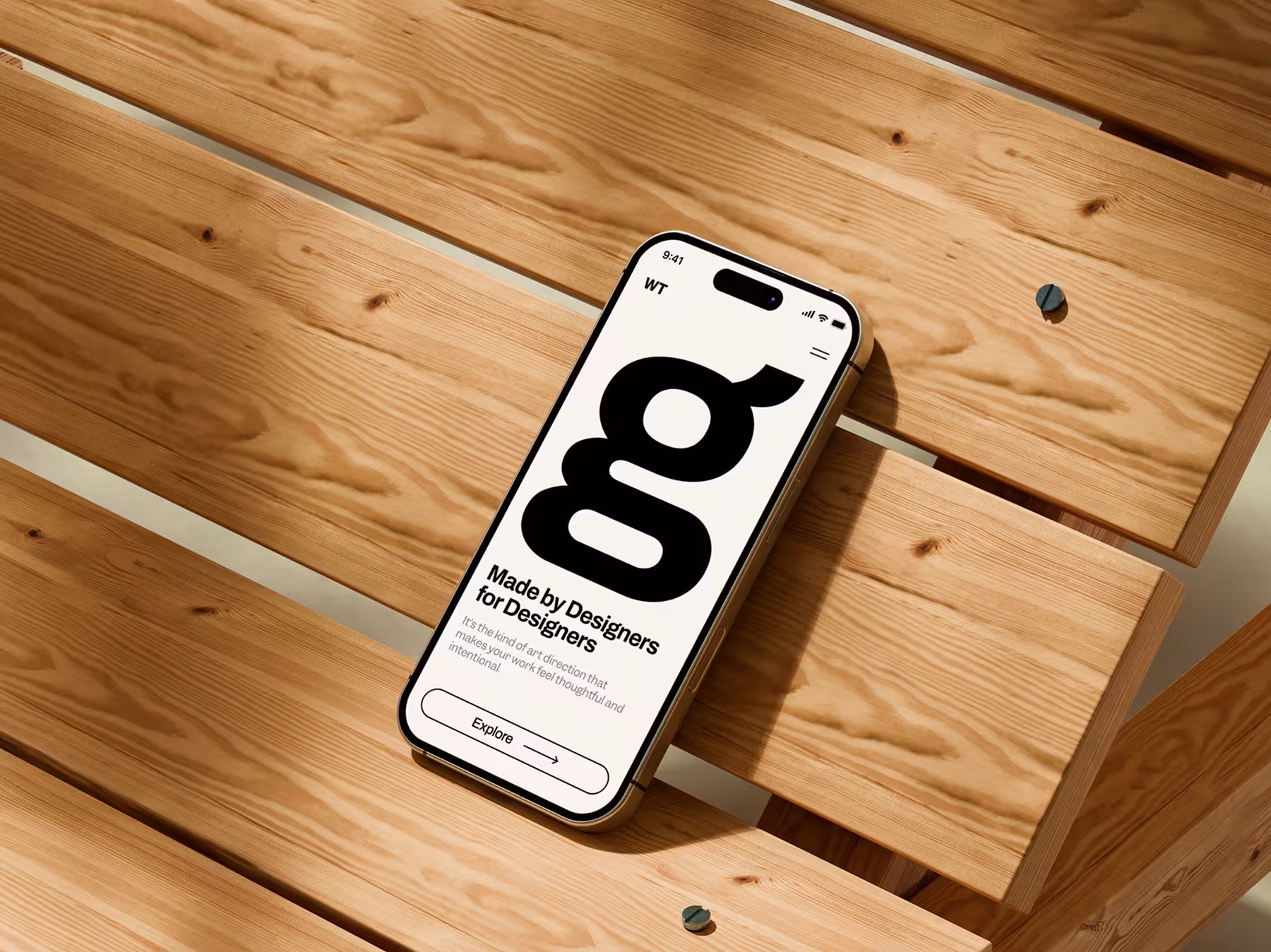 iPhone Mockup on Wooden Bench Surface