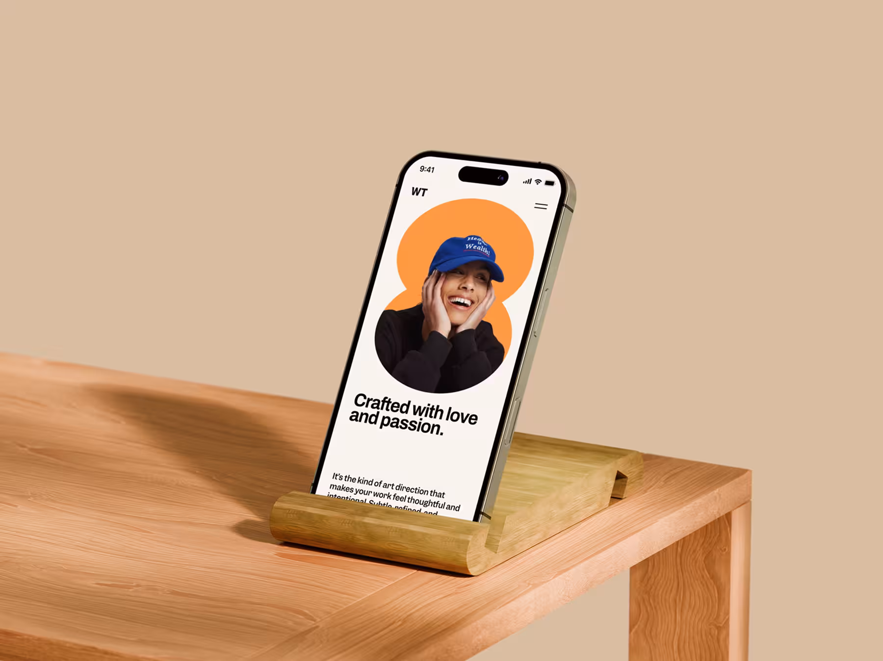iPhone Mockup on Wooden Stand