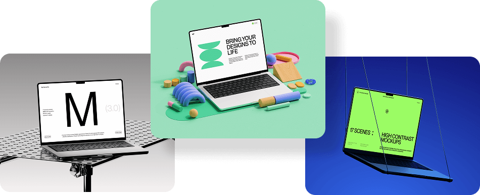 Showcase your projects with high-quality MacBook mockups for Figma and Photoshop. Explore laptop mockups in realistic scenes, perfect for apps, websites, and branding.