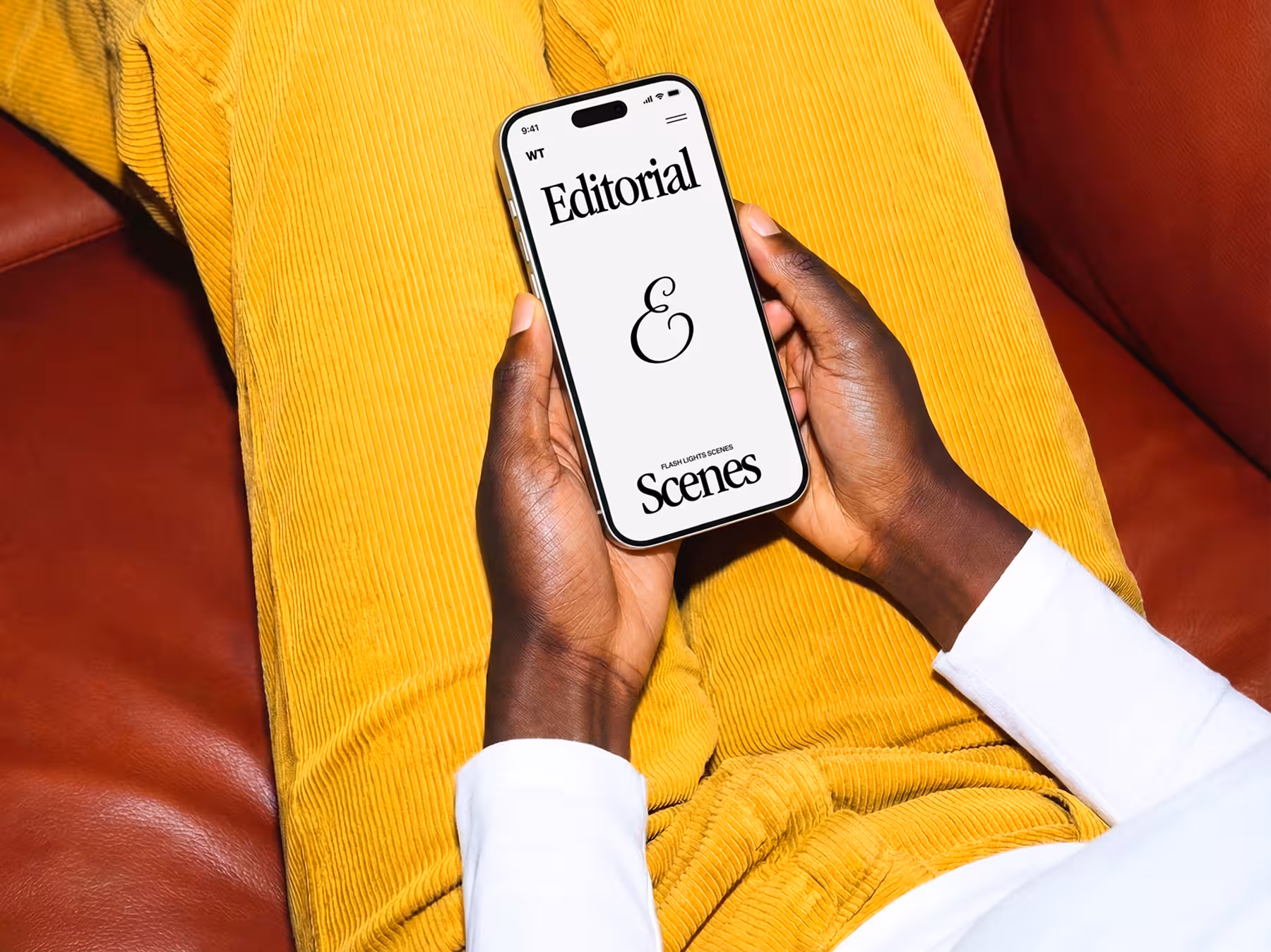 Seated Hands Holding iPhone Editorial Mockup