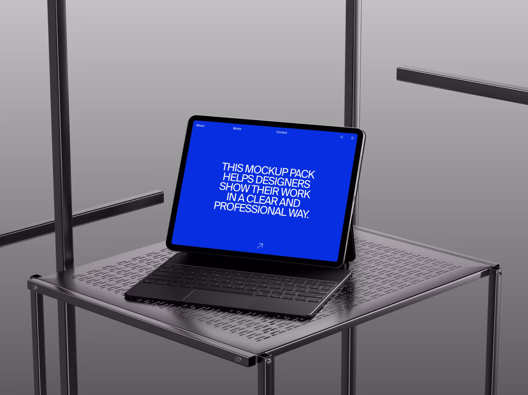 Tablet Mockup on Perforated Metal Table