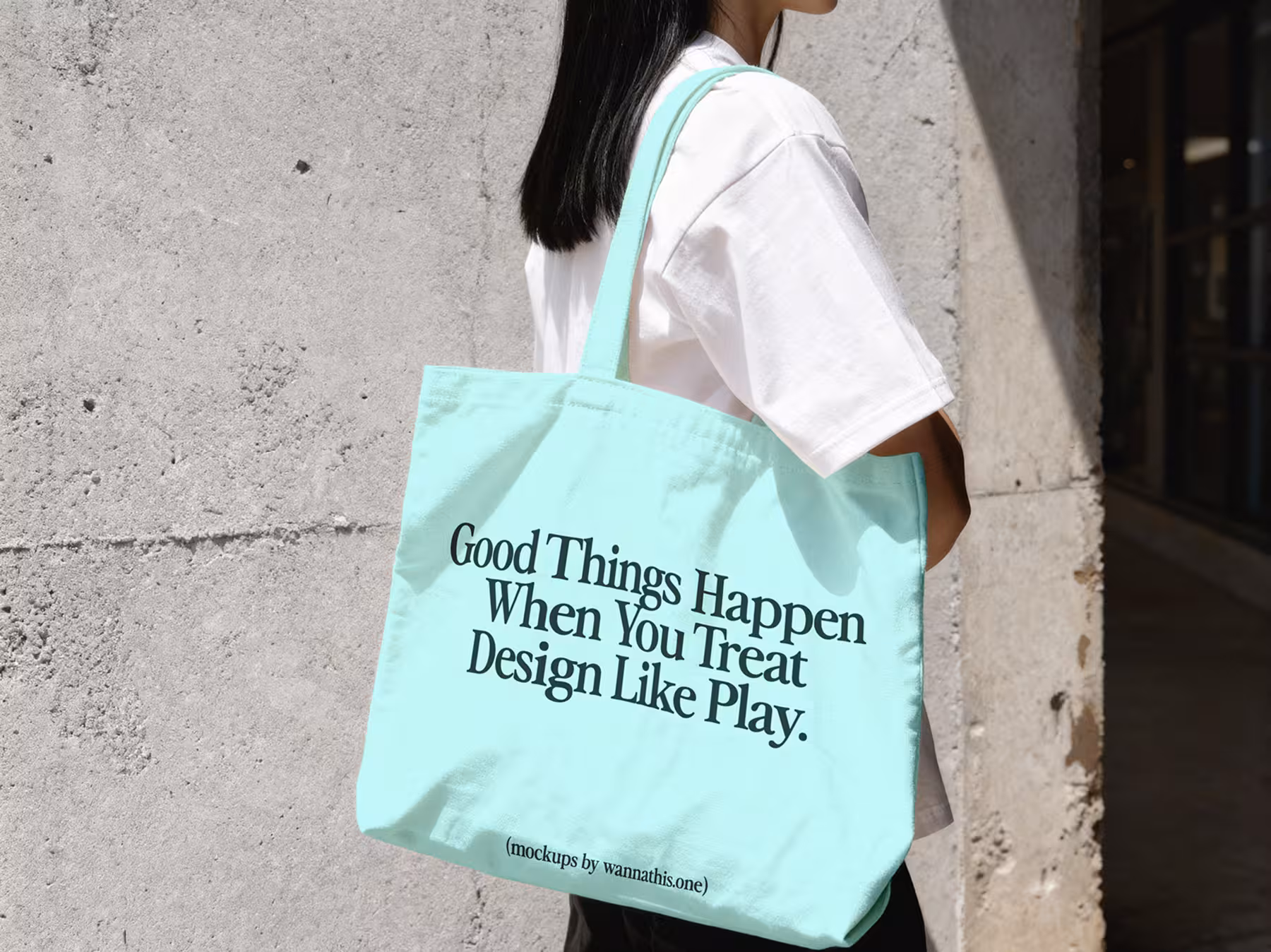 Tote Bag Mockup in Minimal Studio on Standing Model