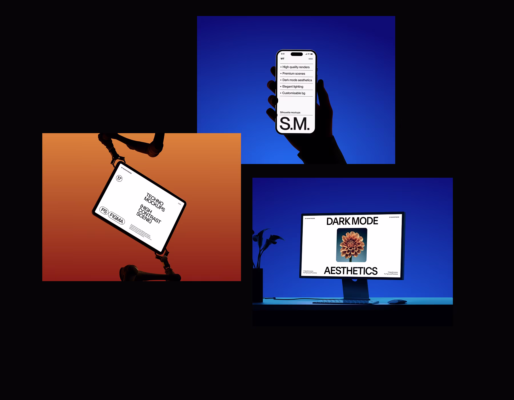 This mockup set features dark silhouette device mockups, designed to showcase digital designs with a bold and high-contrast aesthetic. It includes various scenes with laptops, tablets, and smartphones, presented with dramatic lighting and modern compositions. Perfect for UI/UX designers, branding experts, and digital artists, these mockups create a strong visual impact. The high-quality renders provide versatility for websites, presentations, and marketing materials. With a sleek and professional look, these mockups help bring your designs to life in a striking way.