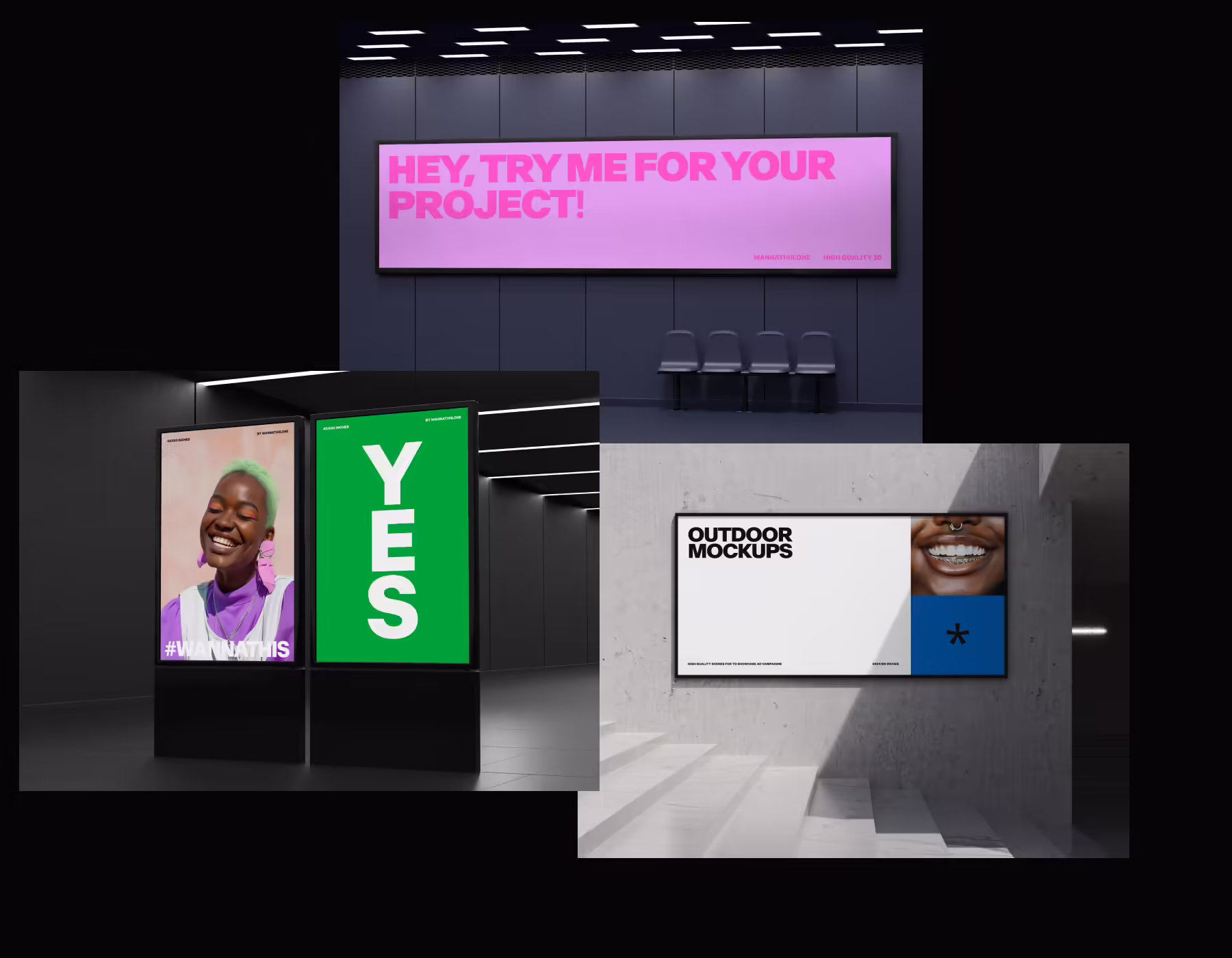 The outdoor billboard mockups pack is a high-quality set of mockups perfect for digital designers. It comes in three different formats to fit various ad sizes, making it really useful for showing off designs in outdoor settings. This pack is great for anyone in branding, graphic design, or UI design because it helps them show how their designs would look in real life. It's a simple and effective way to make designs stand out and look professional.
