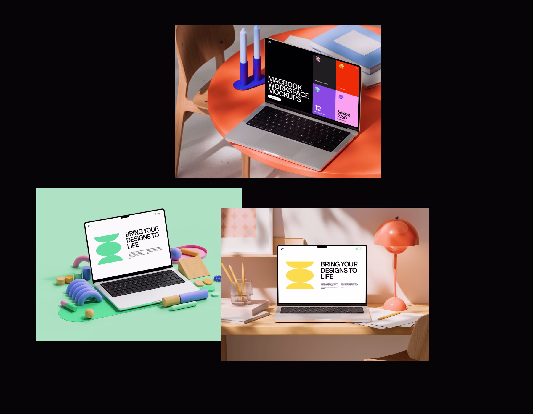 Collection of cozy, vibrant workspaces styled with personality. From warm, minimalist desks to playful setups with colorful stationery and textures, each scene is thoughtfully designed to feel authentic and inspiring. Whether it’s a bold orange desk or a calming blue workspace, you’ll find the perfect setting to match your creative vision.